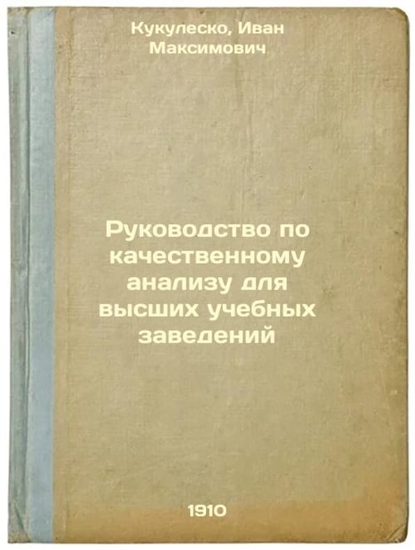Short description: In Russian. Kukulesko, Ivan Maksimovich. Qualitative Analysis Guide for Higher Education Institutions: St. Petersburg Kyiv: Employee, 1910 (Kyiv). Please feel free to contact us for a detailed description of the copies available. SKU3769191