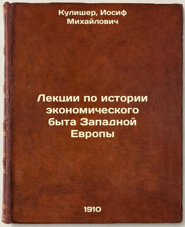 Short description: In Russian. Kulisher, Joseph Mikhailovich. Lectures on the history of economic life in Western Europe. St. Petersburg: type. A.G. Rosen, 1910. Lektsii po istorii ekonomicheskogo byta Zapadnoy Evropy. In Russian /Lectures on the history of economic life in Western Europe. The image is provided for reference only. It may reflect condition of one of the available copies or only help in identifying the edition. Please feel free to contact us for a detailed description of the copies available. SKU3769206