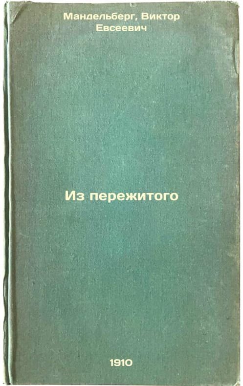 Short description: In Russian. Mandelberg, Viktor Evseevich. From my experience. Davos: Abroad, 1910: type. Davos. AO. The image is provided for reference only. It may reflect condition of one of the available copies or only help in identifying the edition. Please feel free to contact us for a detailed description of the copies available. SKU3769949