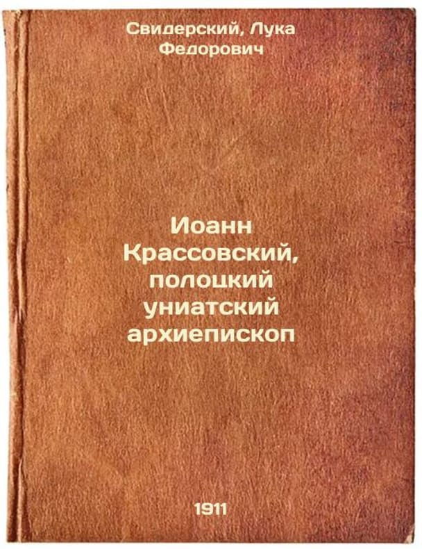 Short description: In Russian. Svidersky, Luka Fedorovich. John Krassovsky, Archbishop of Polotsk. Vitebsk: Gub. type., 1911. Ioann Krassovskiy, polotskiy uniatskiy arkhiepiskop. In Russian /John Krassovsky, Archbishop of Polotsk Unate. The image is provided for reference only. It may reflect condition of one of the available copies or only help in identifying the edition. Please feel free to contact us for a detailed description of the copies available. SKU3784497