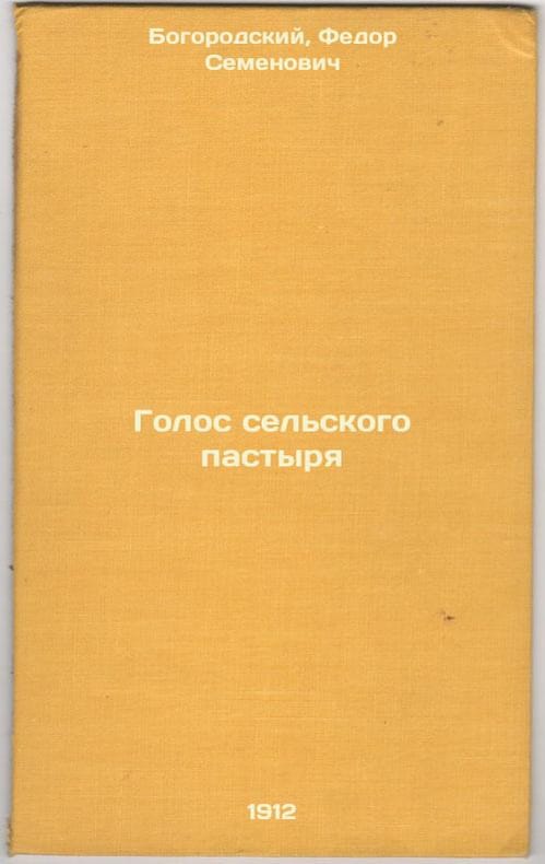 Short description: In Russian. Bogorodsky, Fedor Semenovich. The Voice of the Rural Shepherd: St. Petersburg: I.L. Tuzov, 1912. The image is provided for reference only. It may reflect condition of one of the available copies or only help in identifying the edition. Please feel free to contact us for a detailed description of the copies available. SKU3788415