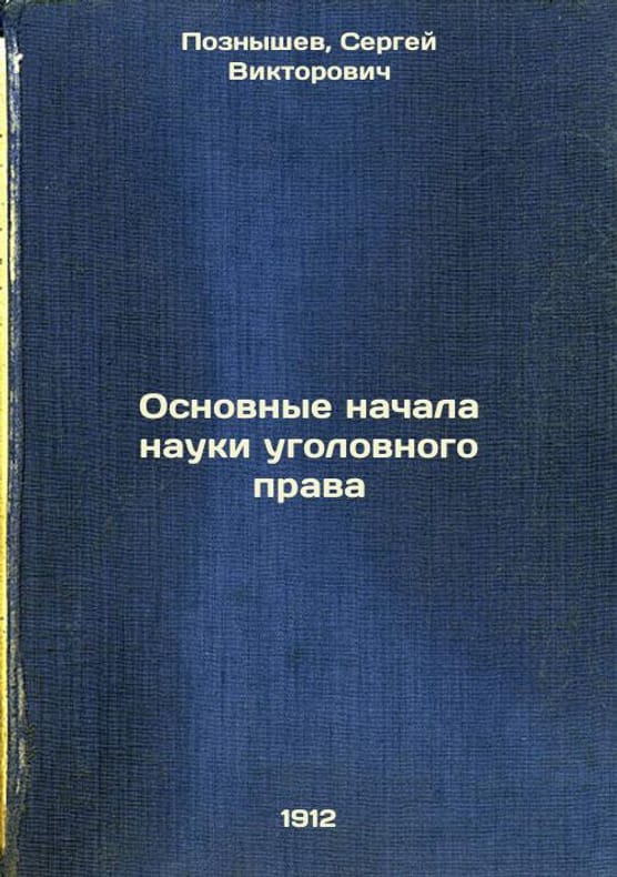 Short description: In Russian. Poznyshev, Sergey Viktorovich. Basic Principles of the Science of Criminal Law. Moscow: Univ. Type., 1907-1909. Osnovnye nachala nauki ugolovnogo prava. In Russian /Basic Principles of Criminal Law Science. The image is provided for reference only. It may reflect condition of one of the available copies or only help in identifying the edition. Please feel free to contact us for a detailed description of the copies available. SKU3527545