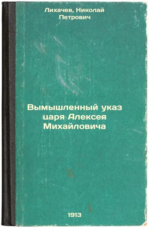 Short description: In Russian. Likhachev, Nikolai Petrovich. Fictional decree of Tsar Alexey Mikhailovich. St. Petersburg: type. M.A. Aleksandrov, 1913. Vymyshlennyy ukaz tsarya Alekseya Mikhaylovicha. In Russian /Fictional decree of Tsar Alexey Mikhailovich. The image is provided for reference only. It may reflect condition of one of the available copies or only help in identifying the edition. Please feel free to contact us for a detailed description of the copies available. SKU3805439