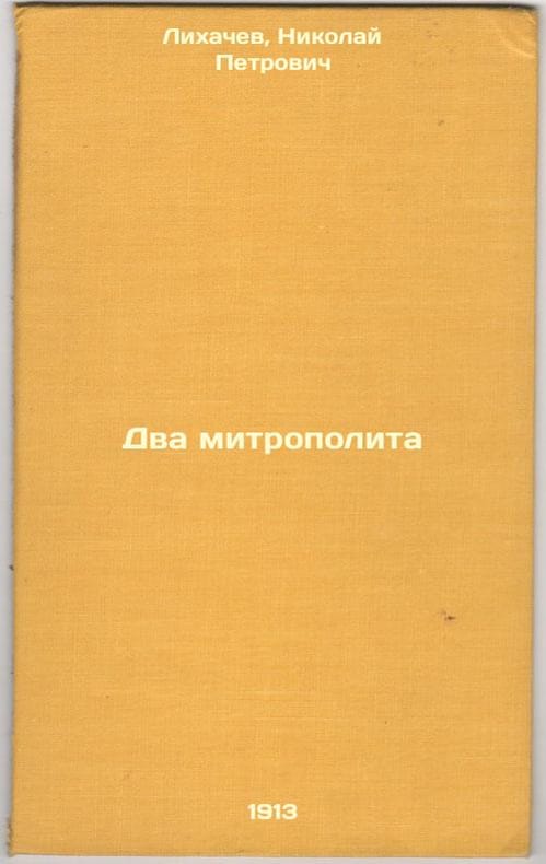 Short description: In Russian. Likhachev, Nikolai Petrovich. Two Metropolitans. St. Petersburg: type. M.A. Aleksandrov, 1913. The image is provided for reference only. It may reflect condition of one of the available copies or only help in identifying the edition. Please feel free to contact us for a detailed description of the copies available. SKU3805443