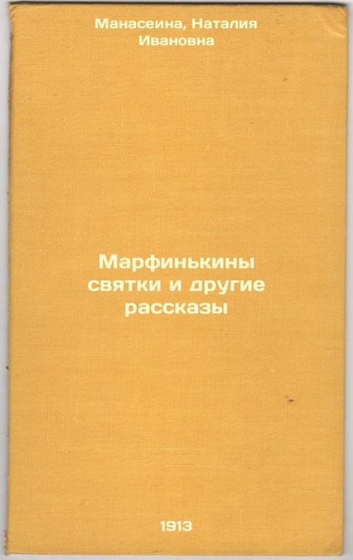 Short description: In Russian. Manaseina, Natalia Ivanovna. Marfinkinas saints and other stories. St. Petersburg: The Trail, 1913. Marfin'kiny svyatki i drugie rasskazy. In Russian /The Marfinkines and Other Stories. The image is provided for reference only. It may reflect condition of one of the available copies or only help in identifying the edition. Please feel free to contact us for a detailed description of the copies available. SKU3805811