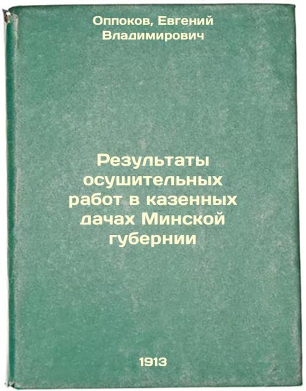 Short description: In Russian. Oppokov, Evgeniy Vladimirovich. The results of drainage works in the state dacha of Minsk province: St. Petersburg: type. T-va artist. Seals, 1913. Please feel free to contact us for a detailed description of the copies available. SKU3807404