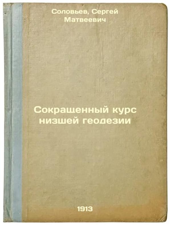 Short description: In Russian. Soloviev, Sergey Matveevich. Abbreviated course of lower geodesy. Moscow, 1913. Sokrashchennyy kurs nizshey geodezii. In Russian /Abbreviated course of lower geodesy. The image is provided for reference only. It may reflect condition of one of the available copies or only help in identifying the edition. Please feel free to contact us for a detailed description of the copies available. SKU3809867