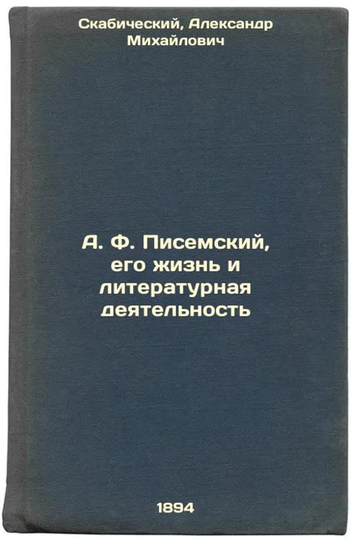 Short description: In Russian. Skabicheskiy, Alexander Mikhailovich. A. F. Pisemsky, His Life and Literary Activity. St. Petersburg: A Type of Public Benefit, 1894. A. F. Pisemskiy, ego zhizn' i literaturnaya deyatel'nost'. In Russian /A.F. Pisemsky, His Life and Literary Activity. The image is provided for reference only. It may reflect condition of one of the available copies or only help in identifying the edition. Please feel free to contact us for a detailed description of the copies available. SKU4023330