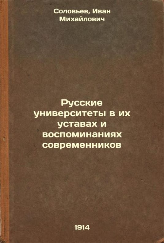 Short description: In Russian. Soloviev, Ivan Mikhailovich. Russian universities in their charters and the memories of their contemporaries. Saint Petersburg: The Energia Book-Lithography, 1914-. Russkie universitety v ikh ustavakh i vospominaniyakh sovremennikov. In Russian /Russian universities in their charters and the memories of their contemporaries. The image is provided for reference only. It may reflect condition of one of the available copies or only help in identifying the edition. Please feel free to contact us for a detailed description of the copies available. SKU4168962