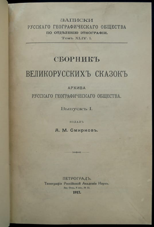 Short description: In Russian. Smirnov, Alexey Matveevich. Collection of Great Russian Tales from the Archives of Russian Geographical Society. Petrograd: type. Russian Academy of Sciences, 1917. The image is provided for reference only. It may reflect condition of one of the available copies or only help in identifying the edition. Please feel free to contact us for a detailed description of the copies available. SKU4177158