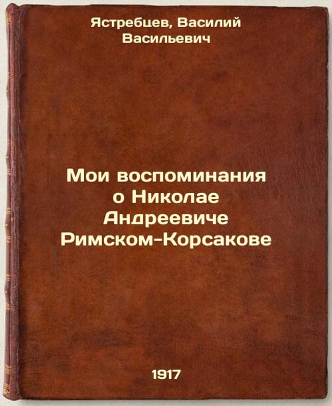 Short description: In Russian. Yastrebtsev, Vasily Vasilievich. My recollections of Nikolai Andreevich Rimsky-Korsakov: Petrograd: type. Head of the street, 1917. Moi vospominaniya o Nikolae Andreeviche Rimskom-Korsakove. In Russian /My memories of Nikolai Andreevich Rimsky-Korsakov. The image is provided for reference only. It may reflect condition of one of the available copies or only help in identifying the edition. Please feel free to contact us for a detailed description of the copies available. SKU4177309