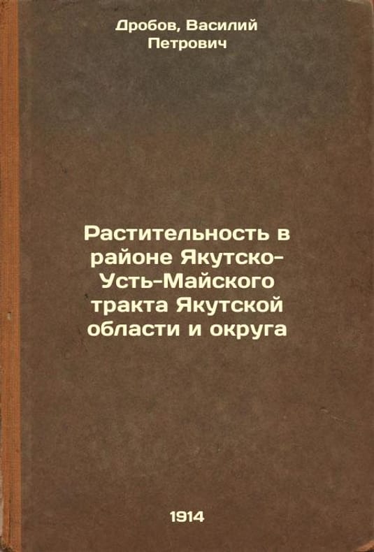 Short description: In Russian. Drobov, Vasily Petrovich. Vegetation in the Yakutsk-Ust-Maysk tract of Yakutsk Oblast and District. Petrograd: type. A.E. Collins, 1914. Please feel free to contact us for a detailed description of the copies available. SKU4188955