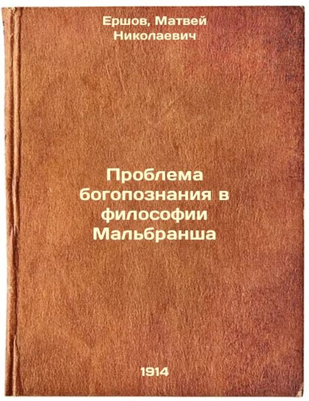 Short description: In Russian. Ershov, Matvey Nikolaevich. The Problem of Knowledge of God in Malbranche Philosophy. Kazan: Central Type., 1914. Please feel free to contact us for a detailed description of the copies available. SKU4189167