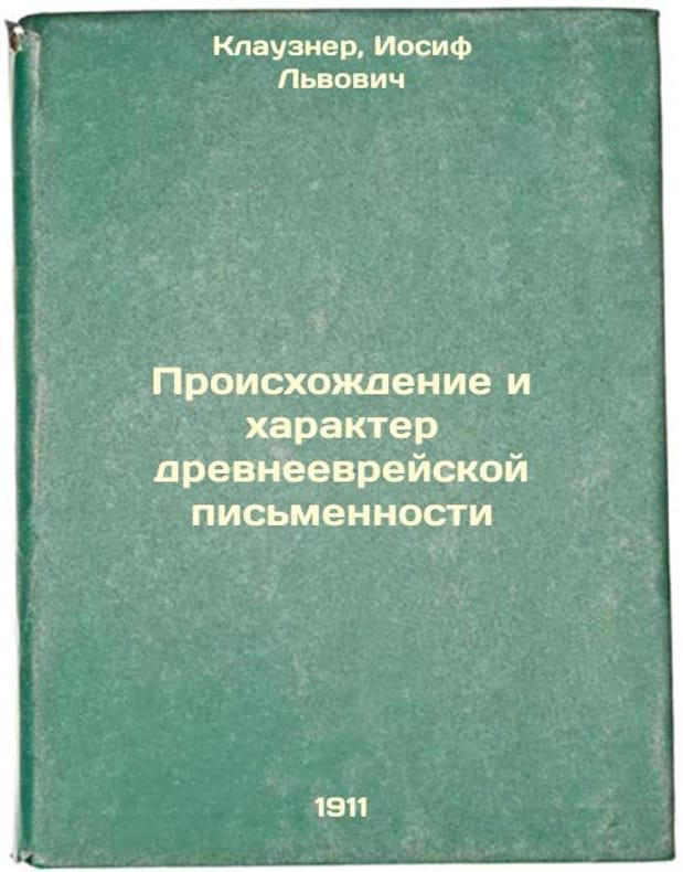 Short description: In Russian. Klausner, Joseph Lvivich. Origin and Nature of Hebrew Writing. Odesa: Odesa Branch of the Jewish Litas, 1911. Proiskhozhdenie i kharakter drevneevreyskoy pis'mennosti. In Russian /Origin and Nature of Hebrew Writing. The image is provided for reference only. It may reflect condition of one of the available copies or only help in identifying the edition. Please feel free to contact us for a detailed description of the copies available. SKU4190361