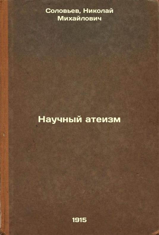 Short description: In Russian. Soloviev, Nikolai Mikhailovich. Scientific Atheism. Moscow: Creative Thought, 1915. The image is provided for reference only. It may reflect condition of one of the available copies or only help in identifying the edition. Please feel free to contact us for a detailed description of the copies available. SKU4198639