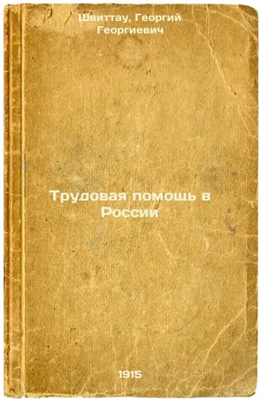 Short description: In Russian. Schwittau, Georgy Georgievich. Labour assistance in Russia. Petrograd: type. A.E. Collins, 1915. The image is provided for reference only. It may reflect condition of one of the available copies or only help in identifying the edition. Please feel free to contact us for a detailed description of the copies available. SKU4200017
