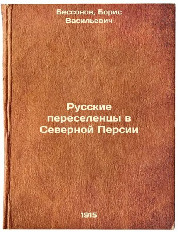 Short description: In Russian. Bessonov, Boris Vasilievich. Russian settlers in Northern Persia. Petrograd: Resettlement of GUZ and Z., 1915. Russkie pereselentsy v Severnoy Persii. In Russian /Russian Migrants in Northern Persia. The image is provided for reference only. It may reflect condition of one of the available copies or only help in identifying the edition. Please feel free to contact us for a detailed description of the copies available. SKU4200257