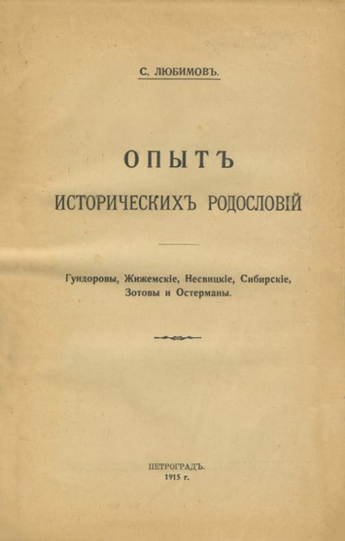 Short description: In Russian. Lyubimov, Sergey Vasilievich. Experience of historical pedigree. Petrograd: type. Anderson and Loiqiansky, 1915. Please feel free to contact us for a detailed description of the copies available. SKU4206605