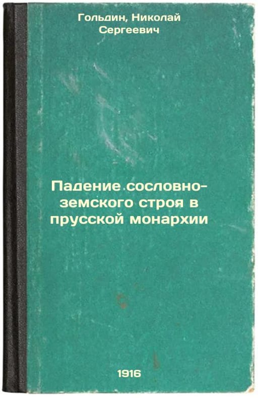 Short description: In Russian. Goldin, Nikolai Sergeevich. The fall of the Zemstvo system in the Prussian monarchy. Kharkiv: type and lit. M. Zilberberg and s-vya, 1916. Padenie soslovno-zemskogo stroya v prusskoy monarkhii. In Russian /The fall of the Zemstvo system in the Prussian monarchy. The image is provided for reference only. It may reflect condition of one of the available copies or only help in identifying the edition. Please feel free to contact us for a detailed description of the copies available. SKU4209828