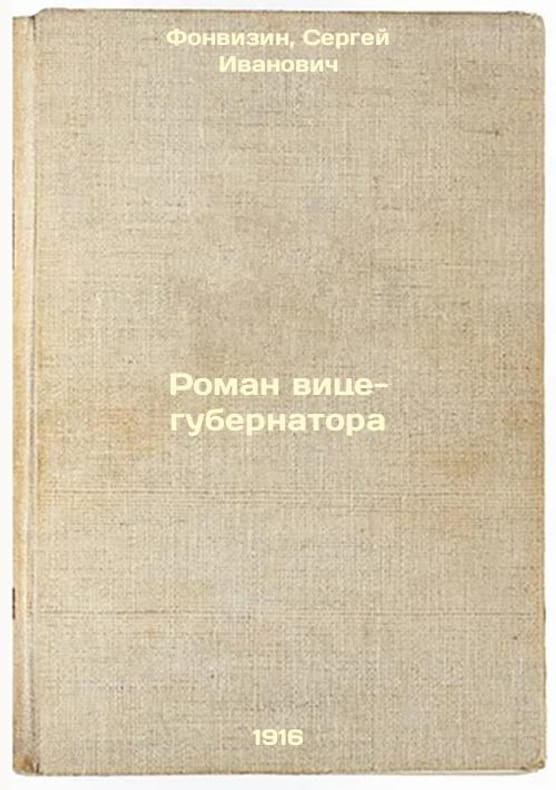 Short description: In Russian. Fonvizin, Sergei Ivanovich. Roman of the Vice-Governor. Petrograd: Typo-lithography Energia, 1917. The image is provided for reference only. It may reflect condition of one of the available copies or only help in identifying the edition. Please feel free to contact us for a detailed description of the copies available. SKU4132030
