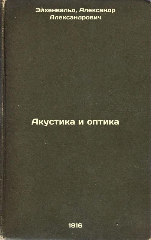 Short description: In Russian. Eikhenwald, Alexander Alexandrovich. Acoustics and Optics. Moscow: State Publishing House, 1921. The image is provided for reference only. It may reflect condition of one of the available copies or only help in identifying the edition. Please feel free to contact us for a detailed description of the copies available. SKU9112502
