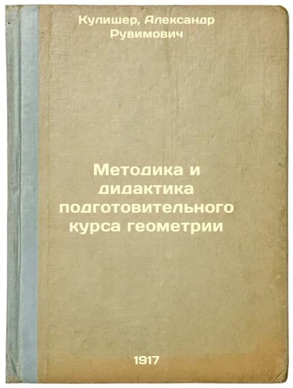 Short description: In Russian. Kulisher, Alexander Ruvimovich. Methodology and didactics of the preparatory course of geometry: Petrograd: type. V.Ya. Milstein, 1917. Please feel free to contact us for a detailed description of the copies available. SKU4217989