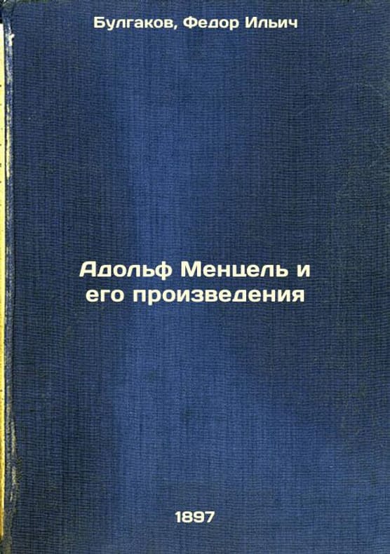 Short description: In Russian. Bulgakov, Fedor Ilyich. Adolf Menzel and His Works. A.S. Suvorin type. The image is provided for reference only. It may reflect condition of one of the available copies or only help in identifying the edition. Please feel free to contact us for a detailed description of the copies available. SKU4427841