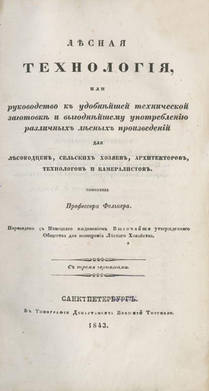 Short description: Forest technology or a guide to the most convenient technical harvesting and the most beneficial use of various forest products for foresters, farmers, architects, technologists, and cameramen In Russian/Lesnaya tekhnologiya ili rukovodstvo k udobneyshey tekhnicheskoy zagotovke i vygodneyshemu upotrebleniyu razlichnykh lesnykh proizvedeniy dlya lesovodtsev, sel'skikh khozyaev, arkhitektorov, tekhnologov i kameralistov. In Russian. Felker, Hieronymus Ludwig. Forest technology or a guide to the most convenient technical harvesting and the most profitable use of various forest products for foresters, rural owners, architects, technologists, and cameralists. St. Petersburg: 1843, type The image is provided for reference only. It may reflect condition of one of the available copies or only help in identifying the edition. Please feel free to contact us for a detailed description of the copies available. SKU4433990