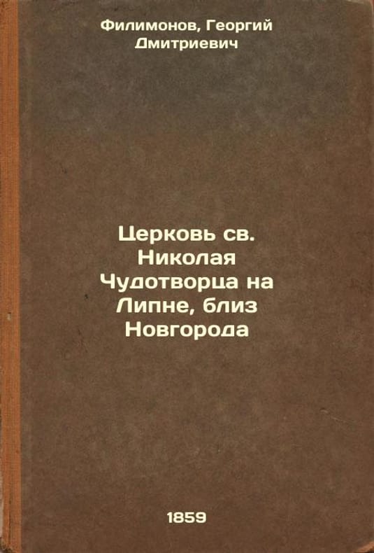 Short description: In Russian. Filimonov, Georgy Dmitrievich. Church of St. Nicholas the Wonderworker on Lipna, near Novgorod. Type. Katkov and Co. Tserkov' sv. Nikolaya Chudotvortsa na Lipne, bliz Novgoroda. In Russian /Church of St. Nicholas the Wonderworker on Lipna, near Novgorod. The image is provided for reference only. It may reflect condition of one of the available copies or only help in identifying the edition. Please feel free to contact us for a detailed description of the copies available. SKU4440333
