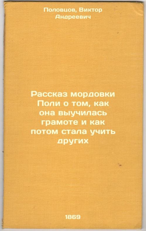 Short description: In Russian. Polovtsov, Viktor Andreevich. The story of Paulie's muzzle about how she learned to read and how she then began to teach others. Rasskaz mordovki Poli o tom, kak ona vyuchilas' gramote i kak potom stala uchit' drugikh. In Russian /The story of Paulie's muzzle, how she learned to read and how she then began to teach others. The image is provided for reference only. It may reflect condition of one of the available copies or only help in identifying the edition. Please feel free to contact us for a detailed description of the copies available. SKU4584688