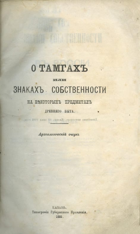 Short description: On tamgs or marks of ownership on certain ancient objects In Russian/O tamgakh ili znakakh sobstvennosti na nekotorykh predmetakh drevnego mira. In Russian. Solovyov, Yevple Titovich. About tamgs or property marks on certain objects of the ancient world. Kazan: 1885, type The image is provided for reference only. It may reflect condition of one of the available copies or only help in identifying the edition. Please feel free to contact us for a detailed description of the copies available. SKU4642629