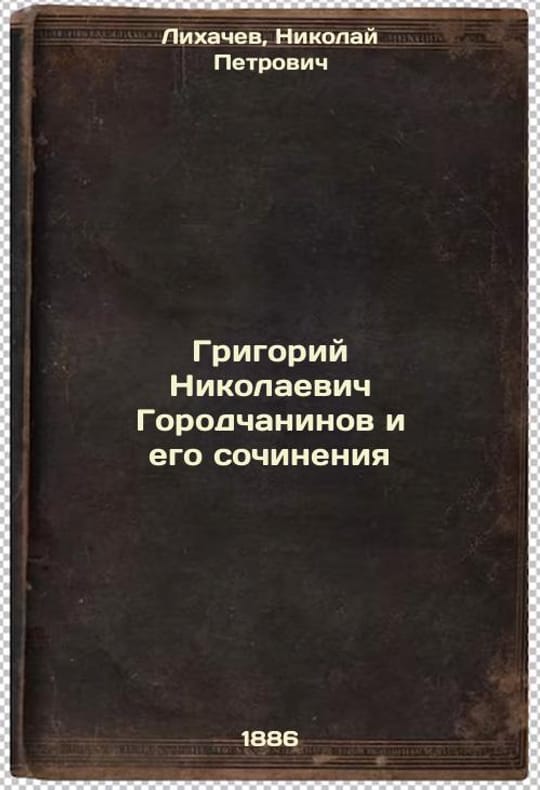Short description: In Russian. Likhachev, Nikolai Petrovich. Grigory Nikolaevich Gorodchaninov and his compositions. Grigoriy Nikolaevich Gorodchaninov i ego sochineniya. In Russian /Grigory Nikolaevich Gorodchaninov and his compositions. The image is provided for reference only. It may reflect condition of one of the available copies or only help in identifying the edition. Please feel free to contact us for a detailed description of the copies available. SKU4756202