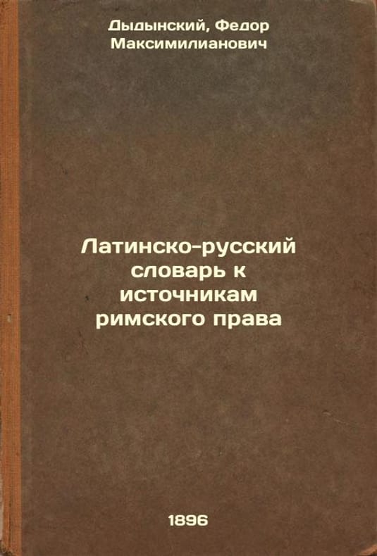 Short description: In Russian. Dydynsky, Fedor Maximilianovich. Latin-Russian Dictionary of Roman Law Sources. K. Kovalevsky type. Latinsko-russkiy slovar' k istochnikam rimskogo prava. In Russian /Latin-Russian Dictionary of Roman Law Sources. The image is provided for reference only. It may reflect condition of one of the available copies or only help in identifying the edition. Please feel free to contact us for a detailed description of the copies available. SKU4767981