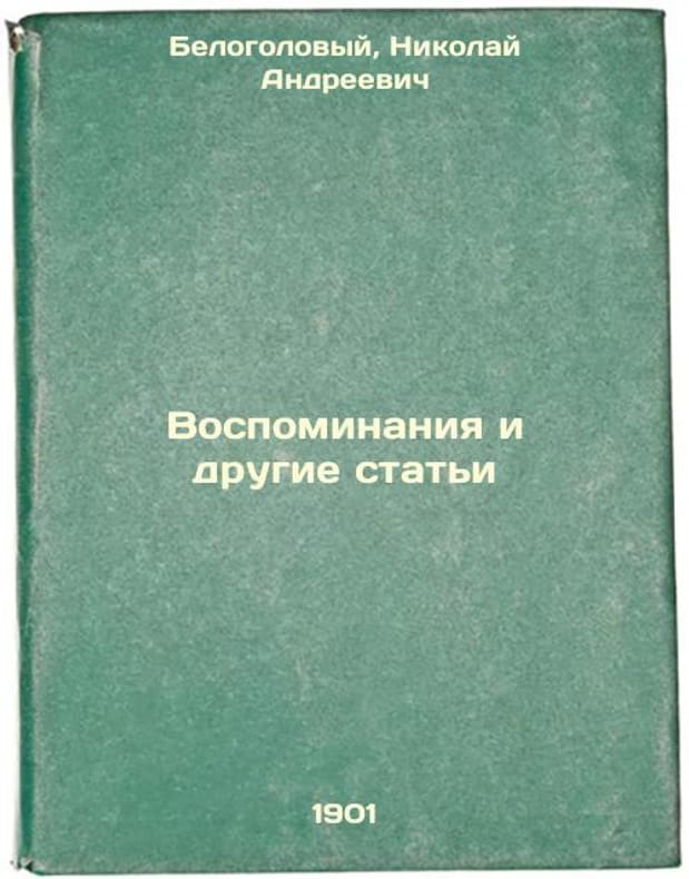 Short description: In Russian. Belogolovy, Nikolai Andreevich. Memories and Other Articles. Lit. fund. The image is provided for reference only. It may reflect condition of one of the available copies or only help in identifying the edition. Please feel free to contact us for a detailed description of the copies available. SKU5118583