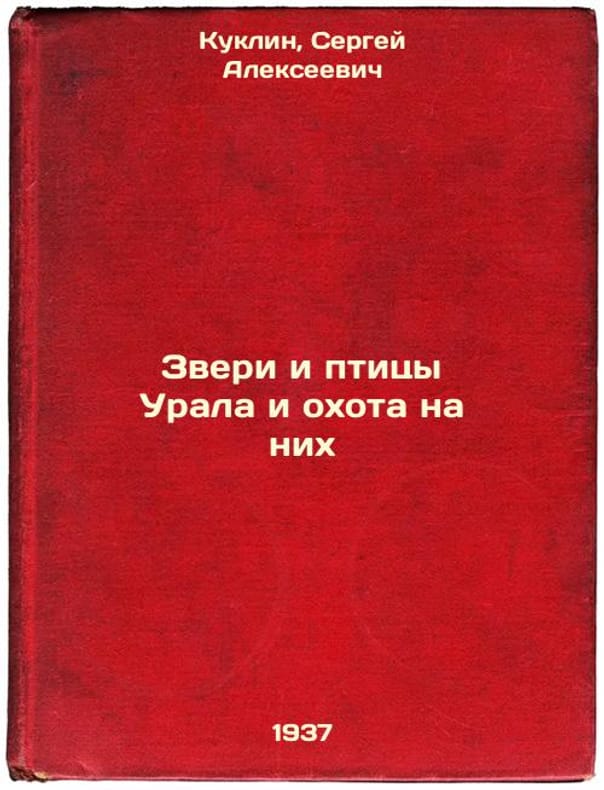 Short description: In Russian. Kuklin, Sergey Alekseevich. Beasts and Birds of the Urals and Hunting Them. Sverdlovsk: Sverdlgiz, 1938: Typographical Book Trust. Zveri i ptitsy Urala i okhota na nikh. In Russian /Beasts and birds of the Urals and hunting them . The image is provided for reference only. It may reflect condition of one of the available copies or only help in identifying the edition. Please feel free to contact us for a detailed description of the copies available. SKU5326631