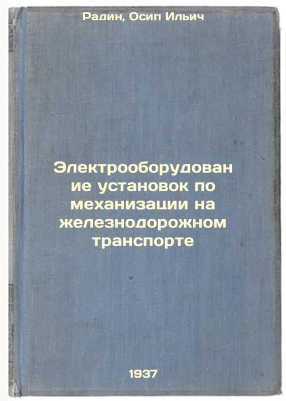 Short description: In Russian. Radin, Osip Ilyich. Electrical installations for railway mechanization. Moscow: edition and type 4. Transjeldorizdat, 1937. Elektrooborudovanie ustanovok po mekhanizatsii na zheleznodorozhnom transporte. In Russian /Electrical installations for railway mechanization. The image is provided for reference only. It may reflect condition of one of the available copies or only help in identifying the edition. Please feel free to contact us for a detailed description of the copies available. SKU5173960