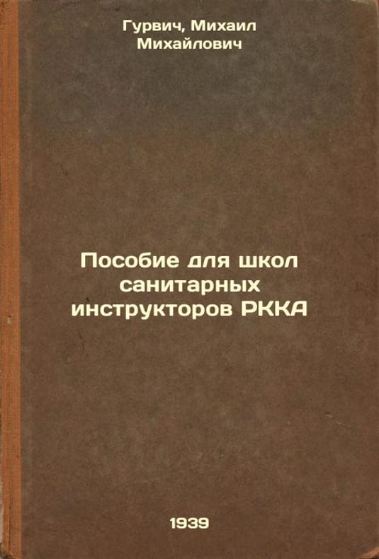 Short description: In Russian. Gurvich, Mikhail Mikhailovich. Manual for RKA Sanitary Trainer Schools. Moscow: Voenizdat, 1939. Posobie dlya shkol sanitarnykh instruktorov RKKA. In Russian /Manual for RKA Sanitary Trainer Schools. The image is provided for reference only. It may reflect condition of one of the available copies or only help in identifying the edition. Please feel free to contact us for a detailed description of the copies available. SKU5187737