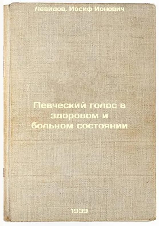 Short description: In Russian. Levidov, Joseph Ionovich. Singing voice in a healthy and sick state. Leningrad Moscow: Art, 1939. Pevcheskiy golos v zdorovom i bol'nom sostoyanii. In Russian /Singing voice in a healthy and sick state . The image is provided for reference only. It may reflect condition of one of the available copies or only help in identifying the edition. Please feel free to contact us for a detailed description of the copies available. SKU5193324
