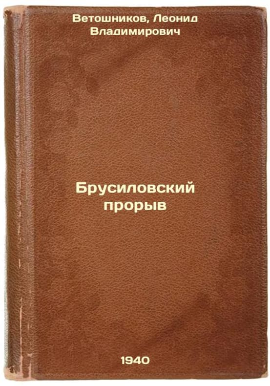Short description: In Russian. Vetoshnikov, Leonid Vladimirovich. Brusilovsky breakthrough. Moscow: Voenizdat, 1940 (Leningrad). The image is provided for reference only. It may reflect condition of one of the available copies or only help in identifying the edition. Please feel free to contact us for a detailed description of the copies available. SKU5211642