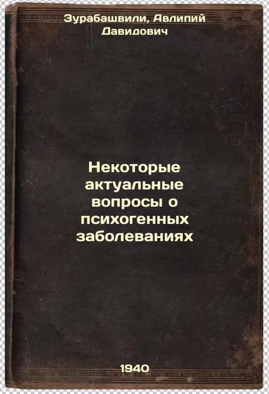 Short description: In Russian. Zurabashvili, Avlipiy Davidovich. Some topical questions about psychogenic diseases. Tbilisi: b.i., 1940. Nekotorye aktual'nye voprosy o psikhogennykh zabolevaniyakh. In Russian /Some topical questions about psychogenic diseases. The image is provided for reference only. It may reflect condition of one of the available copies or only help in identifying the edition. Please feel free to contact us for a detailed description of the copies available. SKU5215746