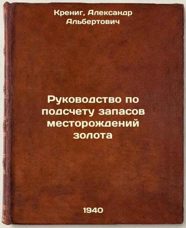 Short description: In Russian. Krenig, Alexander Albertovich. Manual for Calculating Gold Reserves. Moscow: Industry Bureau of Technical Information, 1940. Rukovodstvo po podschetu zapasov mestorozhdeniy zolota. In Russian /Gold Reserves Calculation Manual . The image is provided for reference only. It may reflect condition of one of the available copies or only help in identifying the edition. Please feel free to contact us for a detailed description of the copies available. SKU5218989