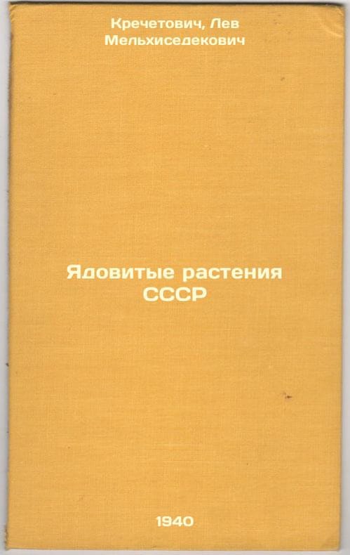 Short description: In Russian. Krechetovich, Lev Melkhizedekovich. Poisonous Plants of the USSR. Moscow: Military-veterinary acronyms. RKA, 1940. The image is provided for reference only. It may reflect condition of one of the available copies or only help in identifying the edition. Please feel free to contact us for a detailed description of the copies available. SKU5218999