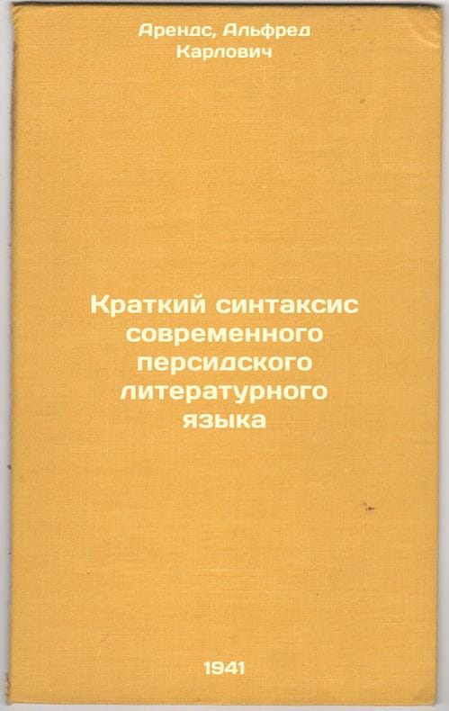 Short description: In Russian. Arends, Alfred Karlovich. A Short Syntax of Modern Persian Literary Language. Moscow Leningrad: Publishing House of Acad. sciences of the USSR, 1941. Kratkiy sintaksis sovremennogo persidskogo literaturnogo yazyka. In Russian /Short Syntax of Modern Persian Literary Language . The image is provided for reference only. It may reflect condition of one of the available copies or only help in identifying the edition. Please feel free to contact us for a detailed description of the copies available. SKU5235733