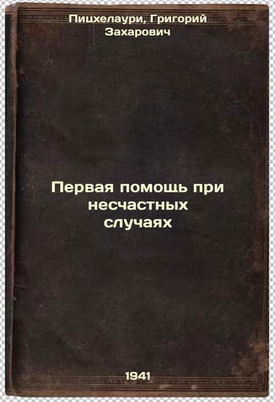 Short description: In Russian. Pitskhelauri, Grigory Zakharovich. First aid in case of accidents. Tbilisi: Gruzmedgiz, 1941. The image is provided for reference only. It may reflect condition of one of the available copies or only help in identifying the edition. Please feel free to contact us for a detailed description of the copies available. SKU5247570