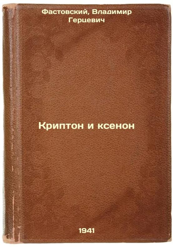Short description: In Russian. Fastovsky, Vladimir Gertsevich. Krypton and Xenon. Moscow Leningrad: Gosenergoizdat, 1941. The image is provided for reference only. It may reflect condition of one of the available copies or only help in identifying the edition. Please feel free to contact us for a detailed description of the copies available. SKU5253942
