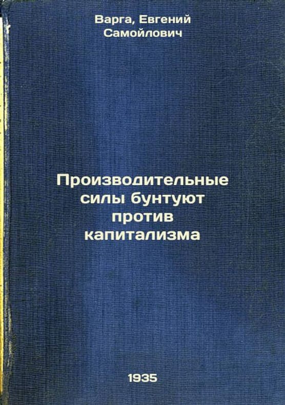 Short description: In Russian. Varga, Evgeniy Samoilovich. Productive Forces Riot Against Capitalism. Moscow: Partizdat, 1935: The Book of the Creed Proletarian. Proizvoditel'nye sily buntuyut protiv kapitalizma. In Russian /Productive forces revolt against capitalism . The image is provided for reference only. It may reflect condition of one of the available copies or only help in identifying the edition. Please feel free to contact us for a detailed description of the copies available. SKU5270293