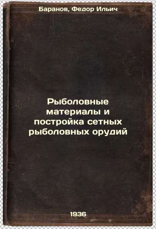 "Short description: In Russian. Baranov, Fedor Ilyich. Fishing materials and construction of net fishing gear. Moscow; Leningrad: Koiz, 1936. Rybolovnye materialy i postroyka setnykh rybolovnykh orudiy. In Russian /Fishing materials and construction of net fishing gear . The image is provided for reference only. It may reflect condition of one of the available copies or only help in identifying the edition. Please feel free to contact us for a detailed description of the copies available. SKU5275886"