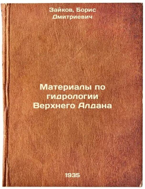 Short description: In Russian. Zaikov, Boris Dmitrievich. Materials on Hydrology of Upper Aldan. Leningrad: Publishing House of Akad. sciences of the USSR, 1935: 2 type. Publishing House of Lenoblast Executive Committee and Soviet. Materialy po gidrologii Verkhnego Aldana. In Russian /Upper Aldan Hydrology Materials . The image is provided for reference only. It may reflect condition of one of the available copies or only help in identifying the edition. Please feel free to contact us for a detailed description of the copies available. SKU5279164