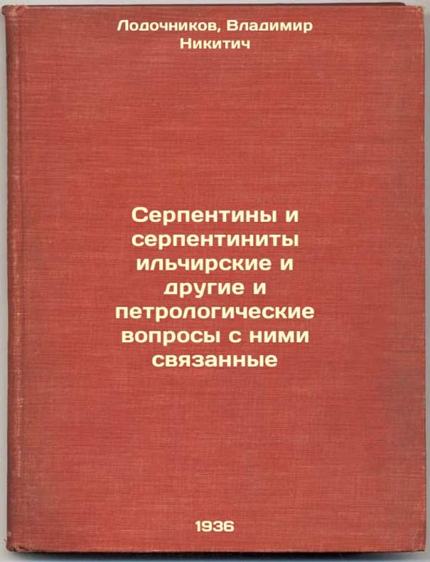 "Short description: In Russian. Lodochnikov, Vladimir Nikitich. Serpentines and Serpentinites of Ilchira and other and petrological issues associated with them. Leningrad; Moscow: Onti. Chief Editor of Geological Exploration and Geodesy Letters, 1936 (Leningrad: Bukharin type). Serpentiny i serpentinity il'chirskie i drugie i petrologicheskie voprosy s nimi svyazannye. In Russian /Serpentines and Serpentinites of Ilchira and other and petrological issues associated with them. The image is provided for reference only. It may reflect condition of one of the available copies or only help in identifying the edition. Please feel free to contact us for a detailed description of the copies available. SKU5289883"