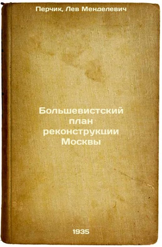 Short description: In Russian. Perchik, Lev Mendelevich. The Bolshevik Plan for the Reconstruction of Moscow. Moscow: Partizdat of the Central Committee of the All-Union Communist Party (b), 1935. Bol'shevistskiy plan rekonstruktsii Moskvy. In Russian /The Bolshevik plan for the reconstruction of Moscow . The image is provided for reference only. It may reflect condition of one of the available copies or only help in identifying the edition. Please feel free to contact us for a detailed description of the copies available. SKU5297924